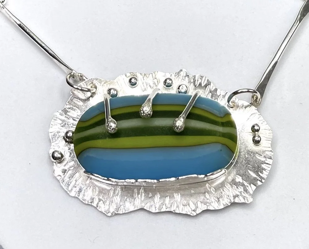 While living in the southwest, I studied silver-smithing in Oklahoma, Texas, and New Mexico. I wanted to learn how to bezel set glass with sterling silver.
